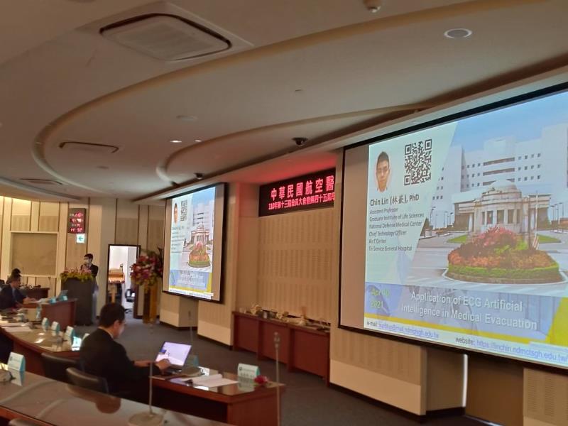 《國防醫學院林嶔助理教授以「心電圖人工智慧於離島後送之應用」為題進行大會講演》
