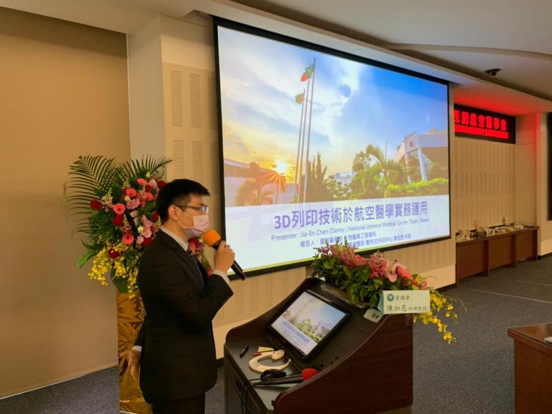 《國防醫學院陳加恩助教以「3D列印技術於航空醫學實務運用」為題進行大會講演》