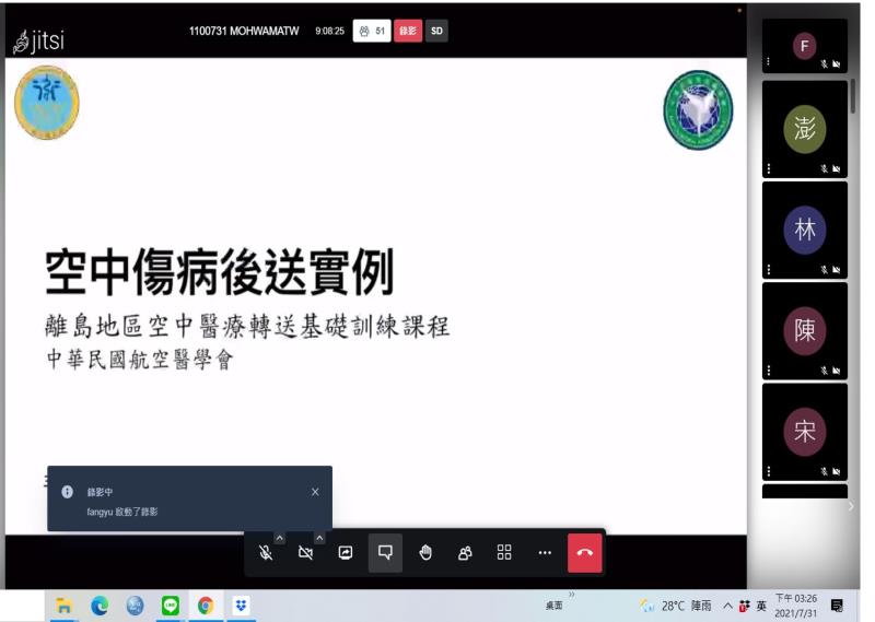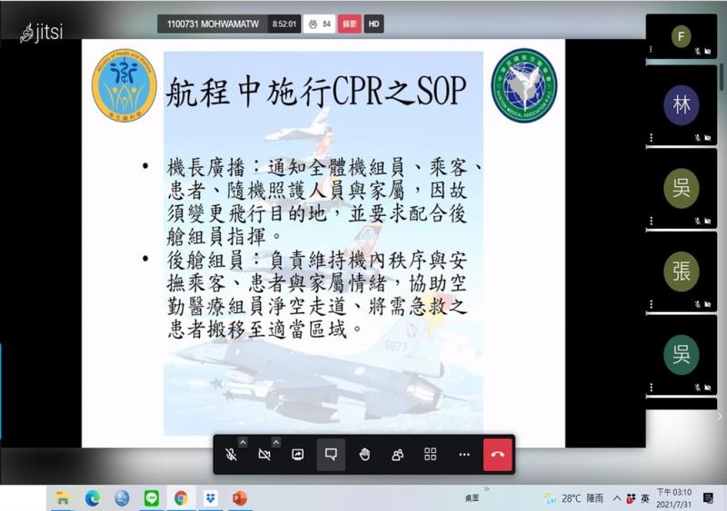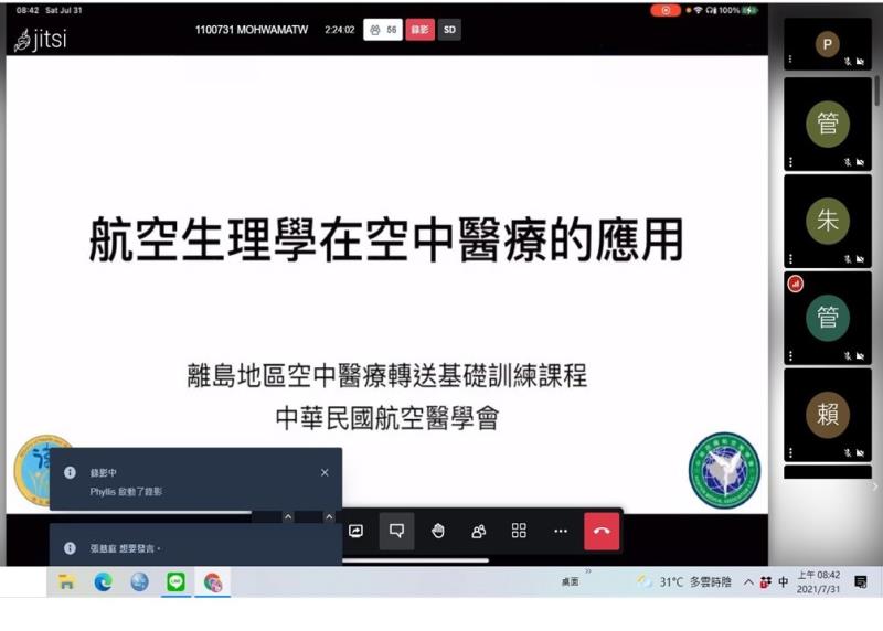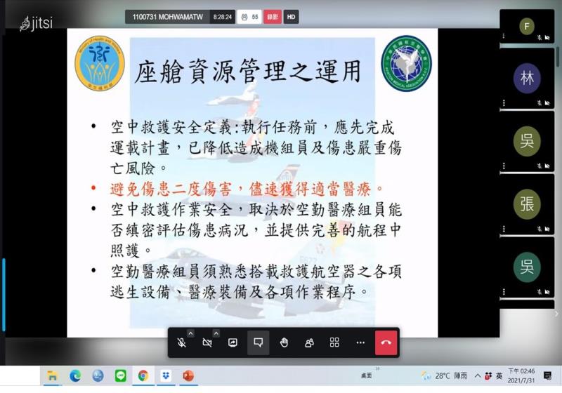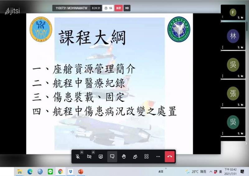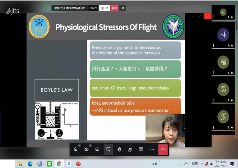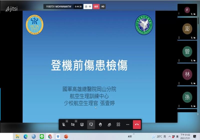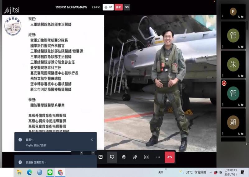 《三軍總醫院急診部徐克強醫師以「航空生理學」為題進行視訊授課》