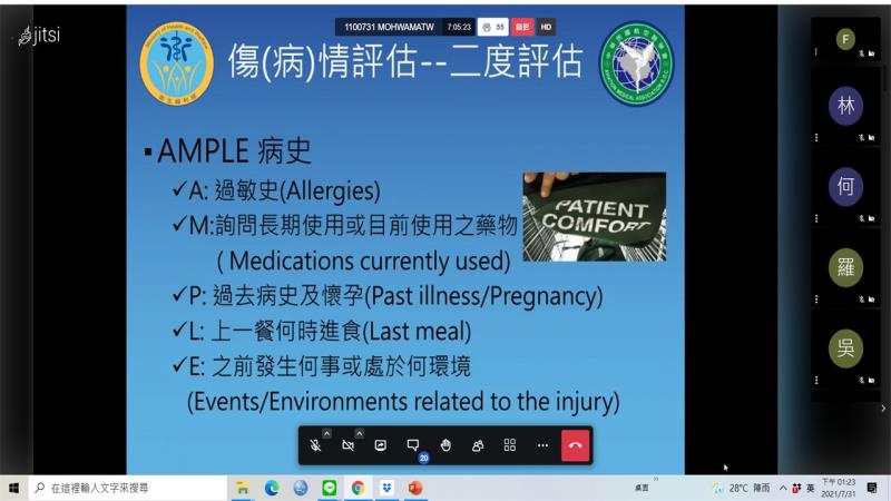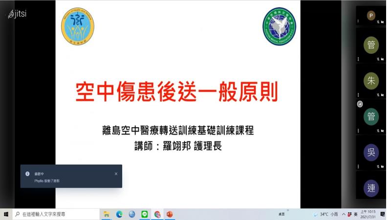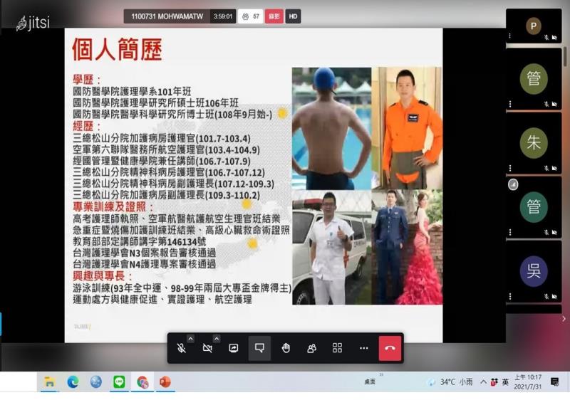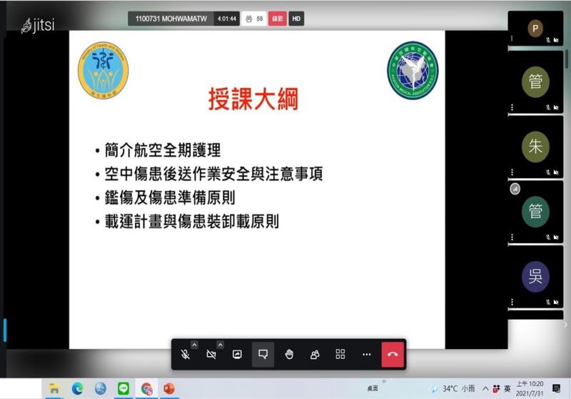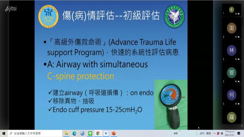 《三軍總醫院松山分院急診部羅翊邦護理長以「空中傷患後送一般原則」為題進行視訊授課》