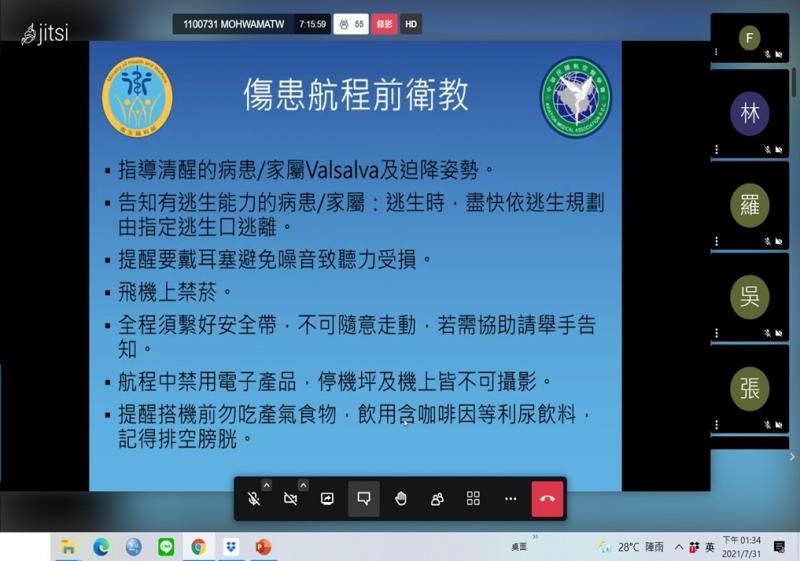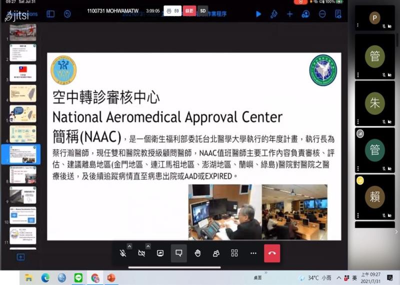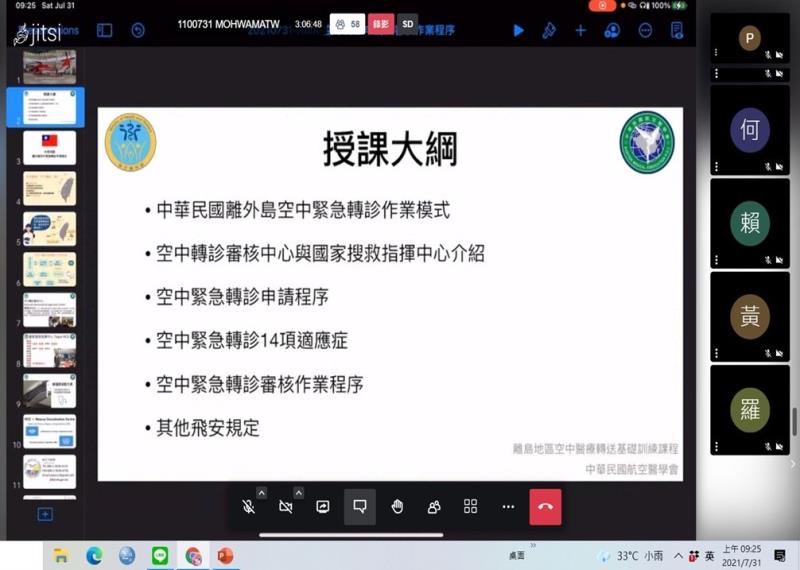 《三軍總醫院急診部徐克強醫師以「空中救護與轉診申請作業與審核程序」為題進行視訊講解》