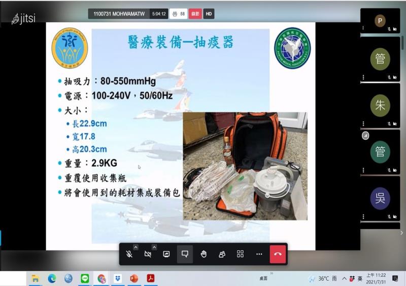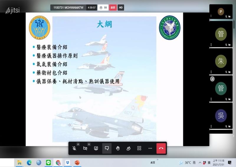《空軍第六混合聯隊戴子芸航空護理官以「航程醫療裝備介紹」為題進行視訊授課》