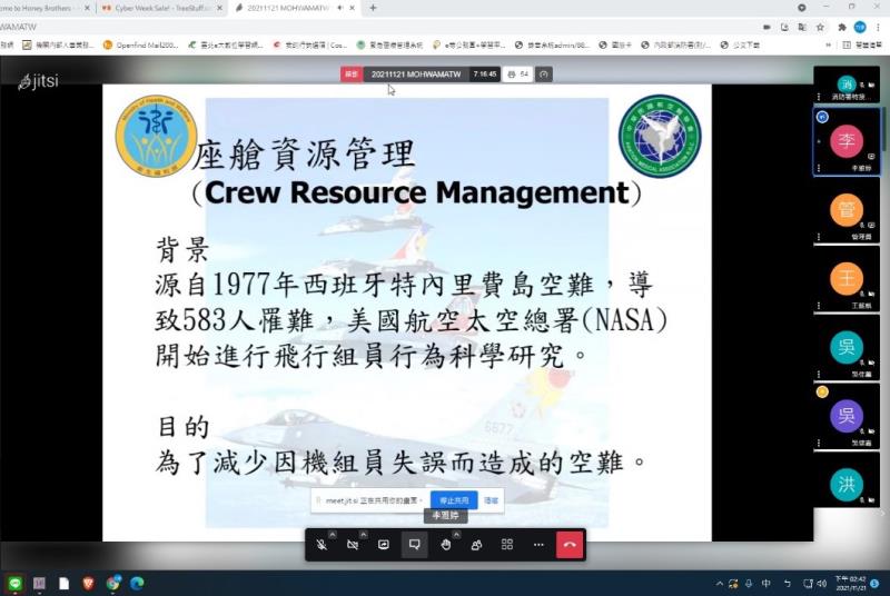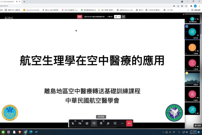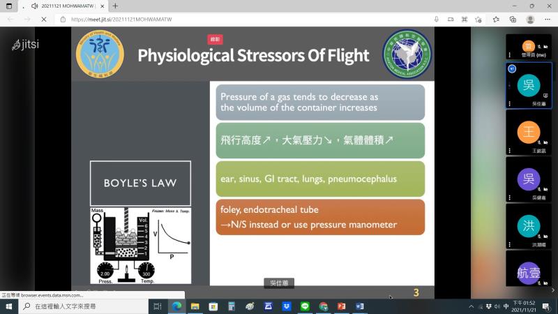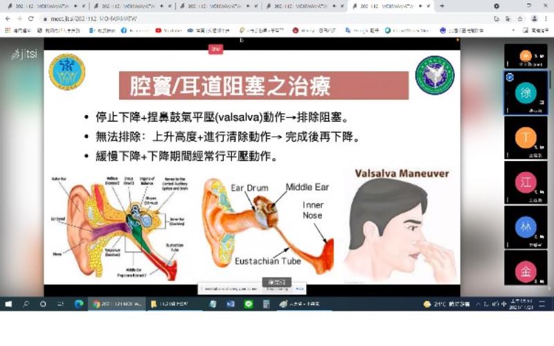 《三軍總醫院急診部徐克強醫師以「航空生理學」為題進行視訊授課》