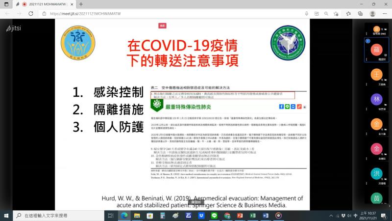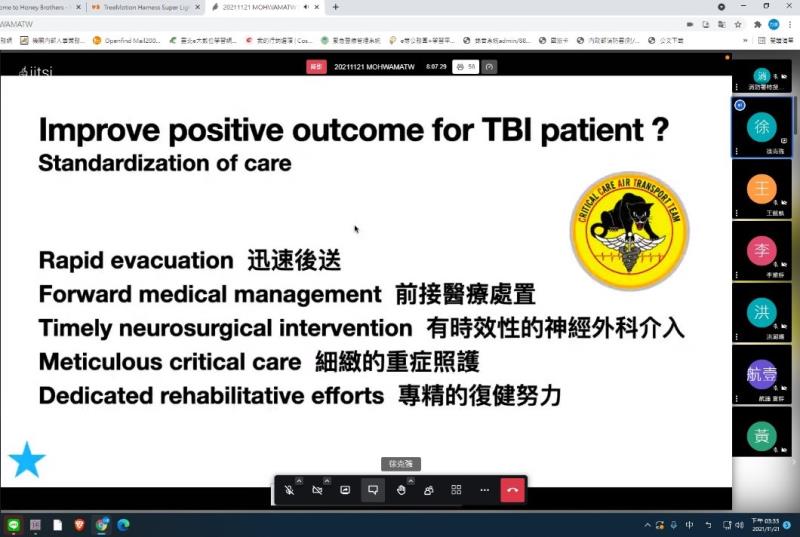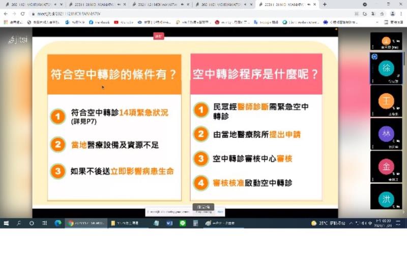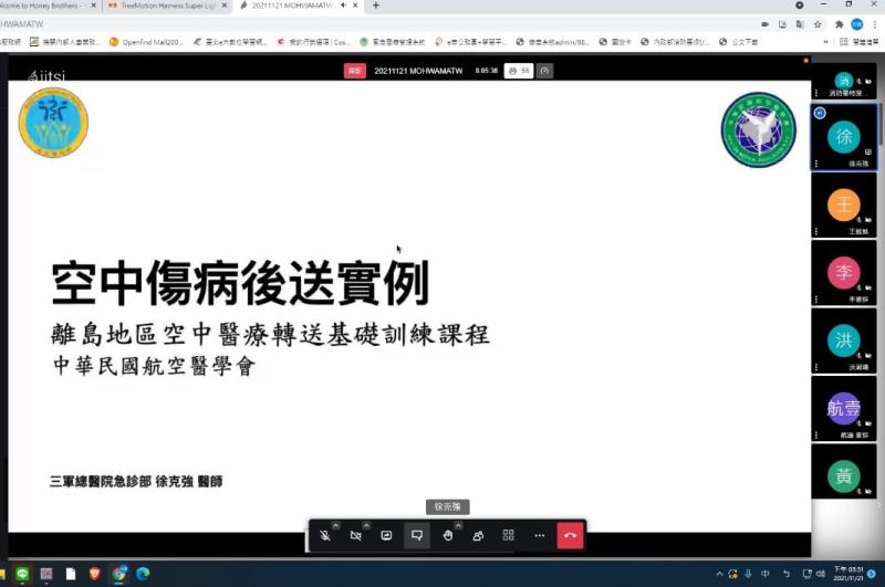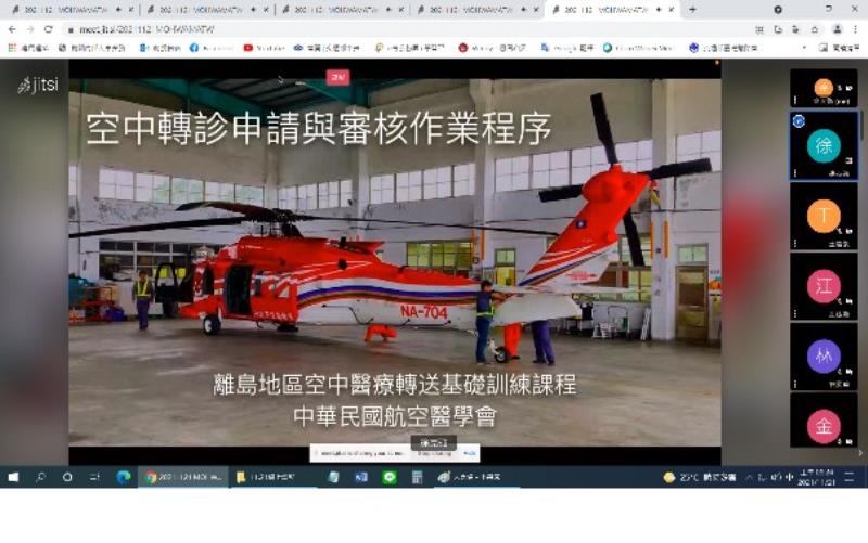 《三軍總醫院急診部徐克強醫師以「空中救護與轉診申請作業與審核程序」為題進行視訊講解》