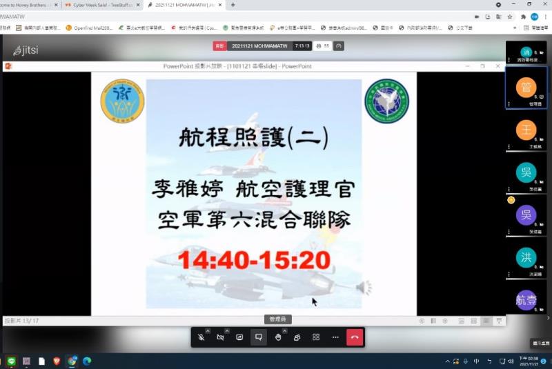 《空軍第六混合聯隊吳佳蕙航空護理官以「航程照護(一)」為題進行視訊授課》
