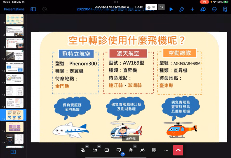 《三軍總醫院急診部徐克強醫師以「空中救護與轉診申請作業與審核程序」為題進行視訊授課》