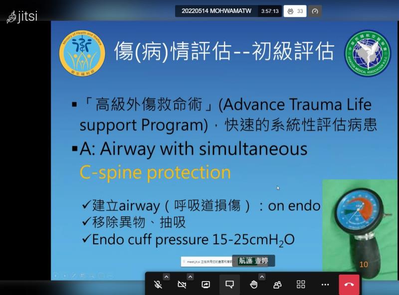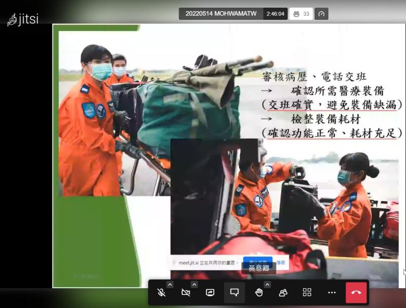 《三軍總醫院松山分院急診部羅翊邦護理長以「空中傷患後送一般原則」為題進行視訊授課》
