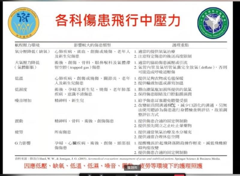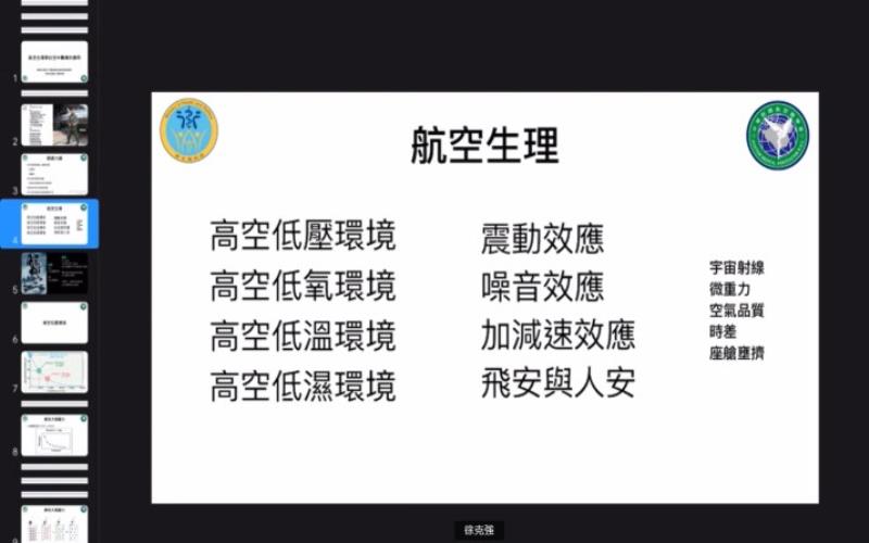 《三軍總醫院急診部徐克強醫師以「航空生理學」為題進行視訊授課》